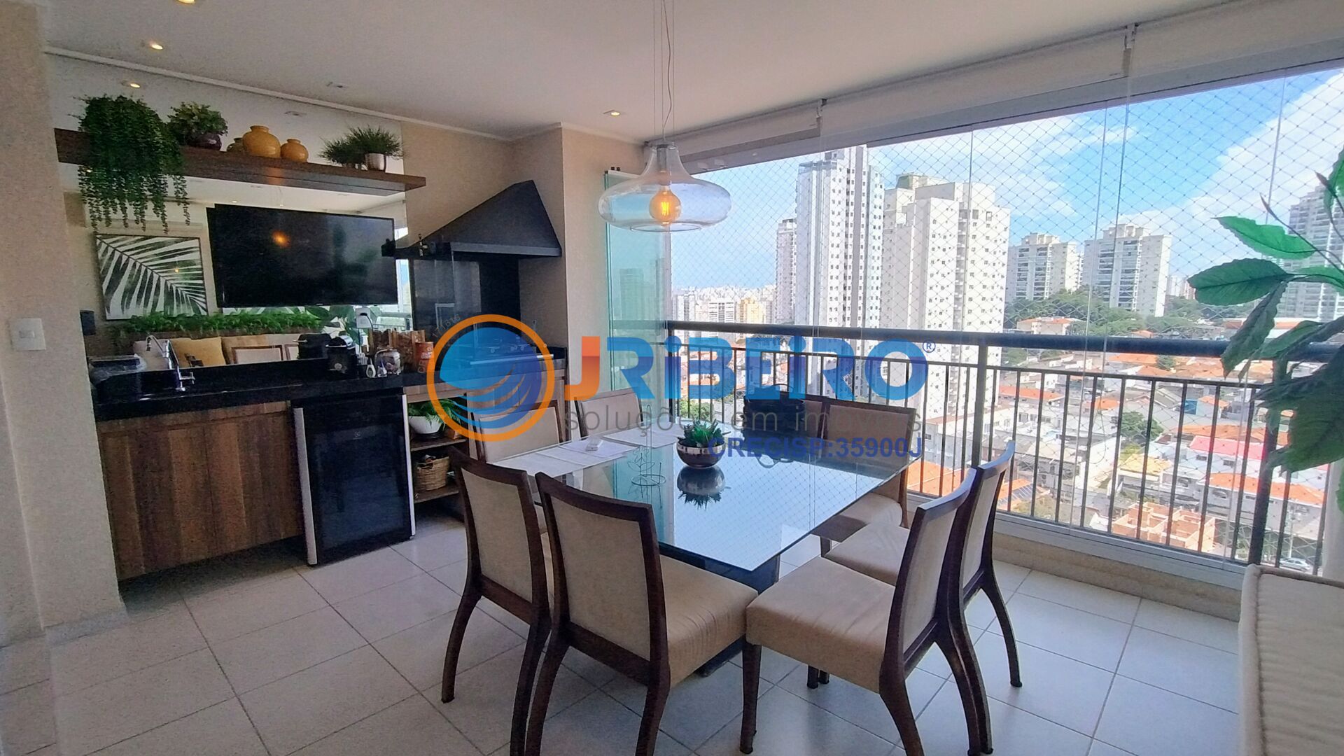 - Varanda gourmet envidraçada, ideal para receber convidados