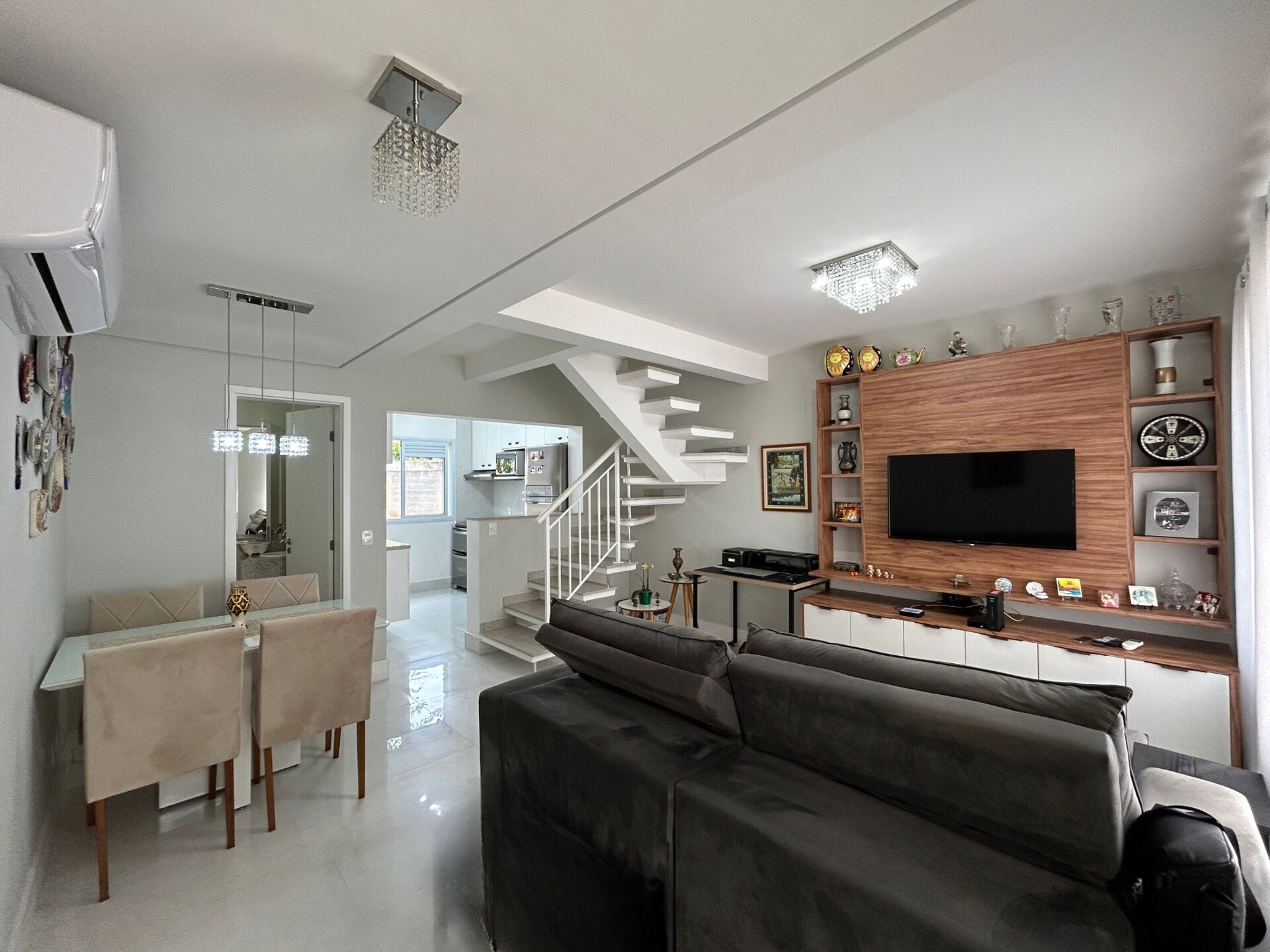 Elegante Casa em Condomínio 2 Suítes, Amplo Living para 2 Ambientes ( Sala de Jantar e TV ) Lavabo, Cozinha repleta de armários, Lavanderia, Sótão, Área Gourmet Privativa e 2 Vagas de Garagem.