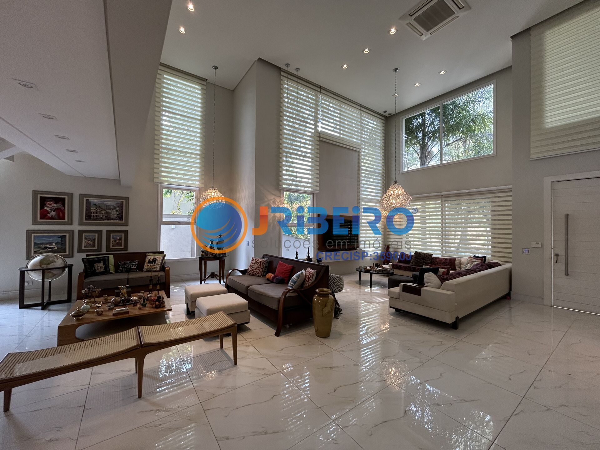 Elegante casa com diversos ambientes de lazer e muito conforto, com um pé direito duplo que resignifíca o imóvel dando-lhe um design único e luxuoso. Amplas suítes e uma sala de TV no mezanino, ideal para momentos com a família.