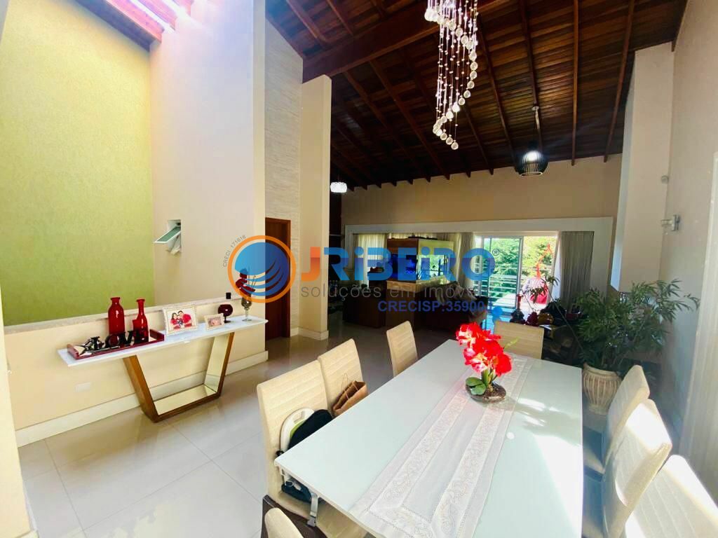 Casa de Alto Padrão distribuída em 513,00 m² de área construída com 03 Suítes, 06 Vagas de Garagem, Espaço Gourmet integrado à Piscina e Salão de Festas, Living para 03 amplos ambientes integrados (Sala de Estar, Sala de Jantar e Sala de TV), moderna Cozinha com armários planejados, Lavanderia, 05 Banheiros, Lavabo. O imóvel se encontra em perfeito estado de conservação com teto rebaixado, iluminação em LEDs, piso em porcelanato, Paisagismo, imponente projeto arquitetônico e design inovador.