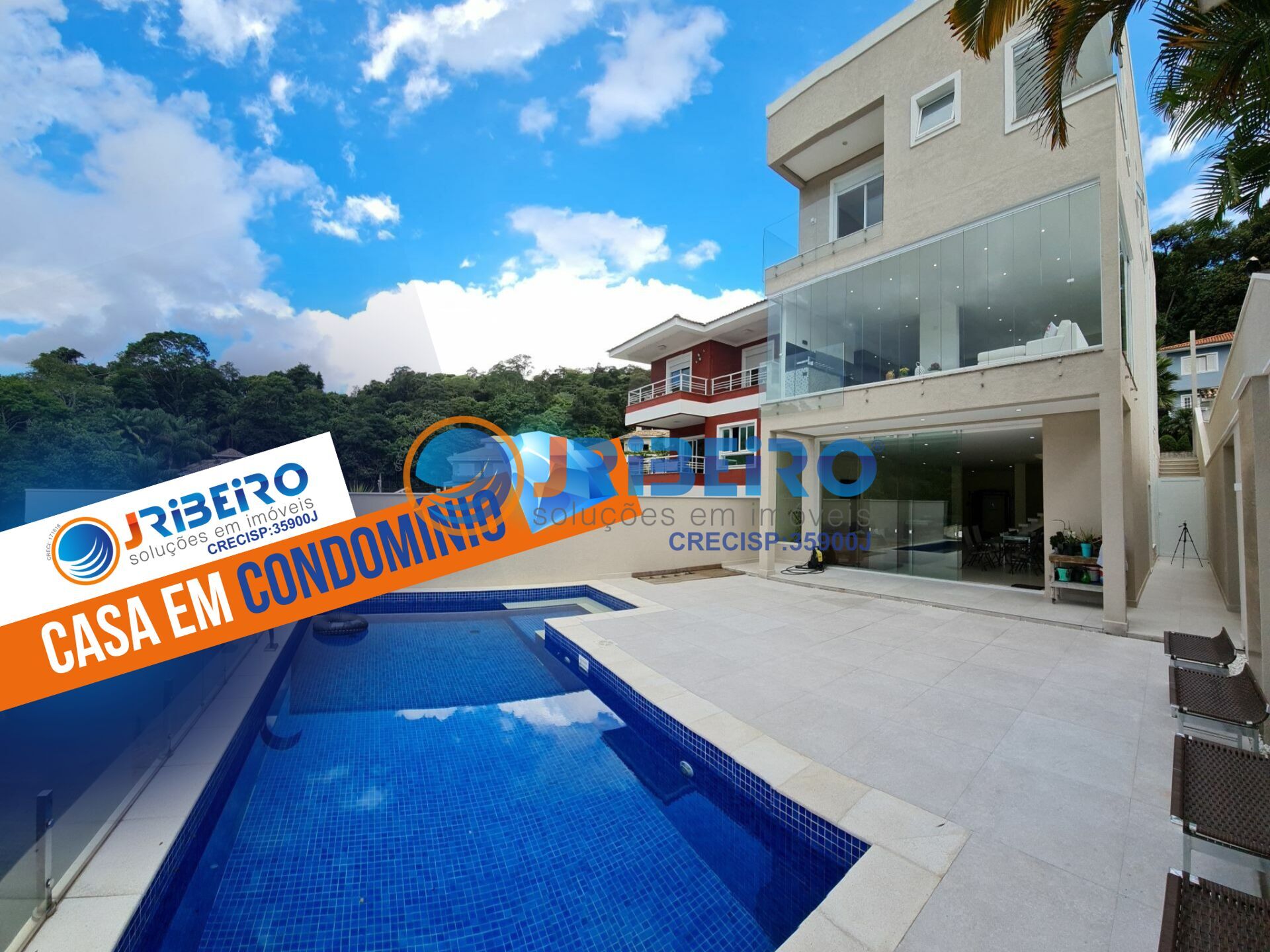 Casa em condomínio de alto padrão distribuída em 440,00 m² com 03 Suítes com Persianas Automatizadas, sendo a Máster com hidromassagem e Closet, Living para 04 amplos ambientes integrados com Pé-direito duplo sendo (Sala de Estar, Sala de TV, Sala de Jantar e Cozinha Gourmet com Ilha), Lavabo, Espaço Gourmet integrado ao Salão de Festas, Sala de Jogos, Academia e Piscina, 04 Vagas de Garagem, Lavanderia, Depósito, Corredores laterais. O imóvel dispõe de imponente projeto arquitetônico e design inovador em conceito aberto, sua porta social, de entrada, contém 4,20 m² de altura por 2,00 m² de largura, Piso em Porcelanato, Sistema de Iluminação em LEDs e Natural com Vidros e Claraboia nas Escadas, Sistema de Aquecimento Solar Boiller e Sistema de Captação de Água da Chuva com capacidade para 5.000 (Cinco Mil Litros), Exuberante vista panorâmica voltada para área verde preservada e elegante paisagismo gramado.