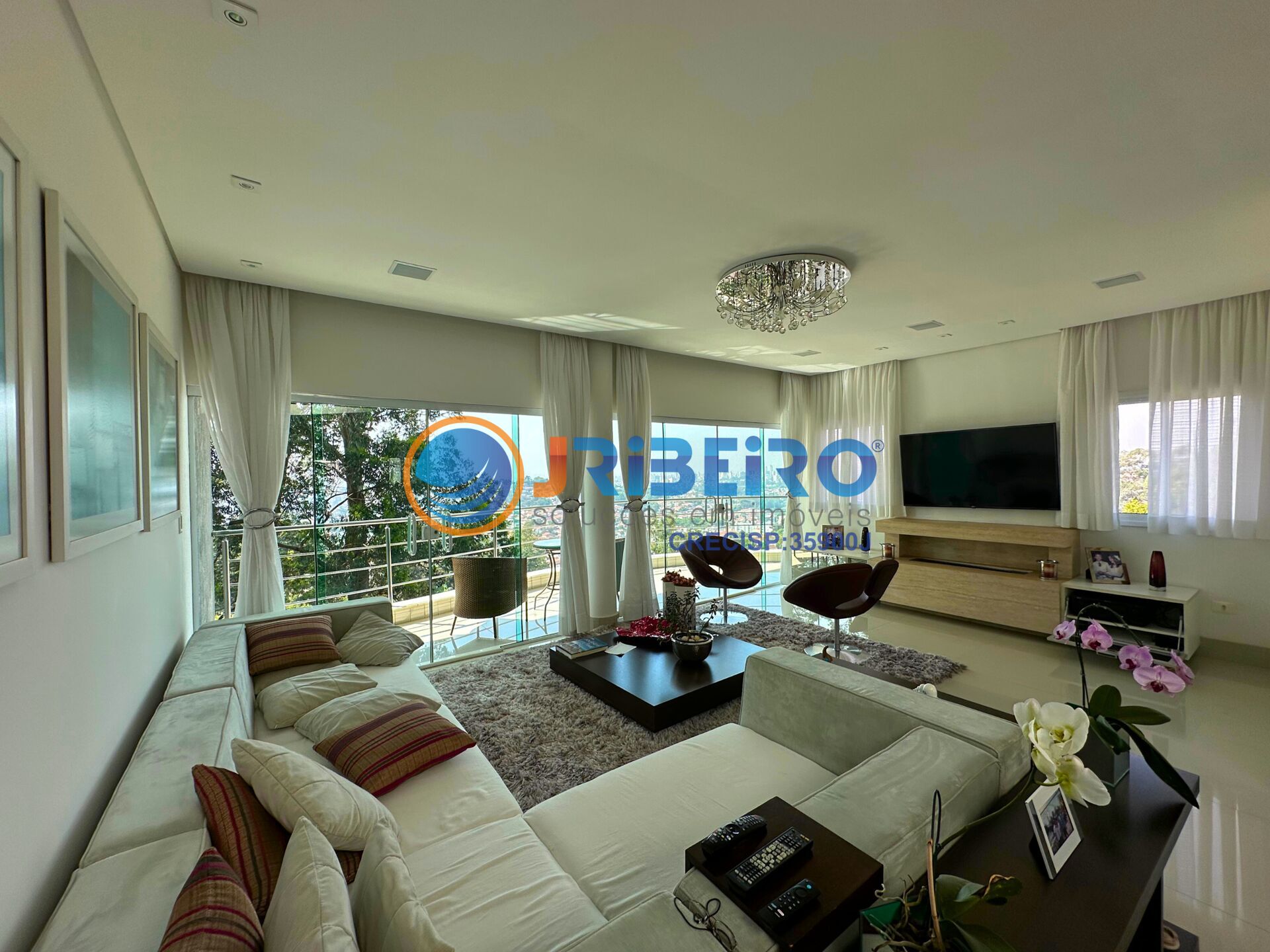 Casa em condomínio com 810m² de área útil e terreno de 929m², 6 dormitórios sendo 3 suítes, 10 vagas de garagem, sala de cinema, espaço gourmet, churrasqueira, living para ambientes como sala de jantar, sala de estar, sala de TV, lavabo, cozinha com armários, suíte de empregado(a), amplo quintal com jardim e paisagismo.